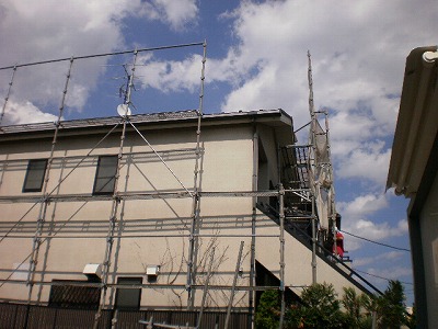 これで完成です。足場が終わってすぐには高圧洗浄に入れない場合が多いです。 それまで1~2日間お待ち下さい。 |