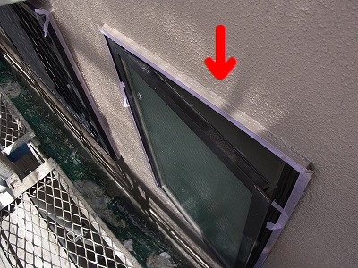 サッシとの見切り線は、テープを張って、きっちり直線で出すようにしています。