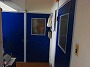 タイル屋さんの作業が一段落した様子ですので、いよいよ花まるリフォームのお仕事を開始します。 まずは養生。作業中に汚してはいけない場所や塗り分ける箇所、作業通路などにビニールシートなどを貼って保護します。