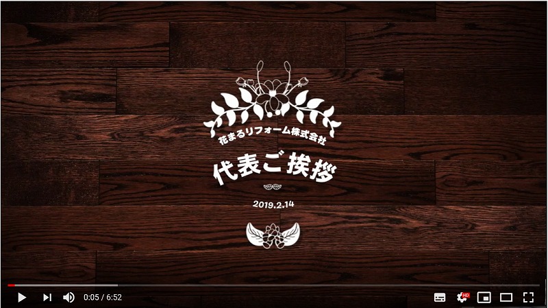 YouTubeの「hanamaru TV」にはなまる社長の代表あいさつを作成しました(_)v