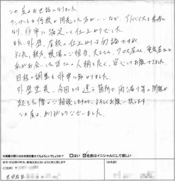 世田谷区のお客様から外壁塗装のご感想をいただきました(^_^)工事に携わった皆さんの人柄もよく安心でした♪