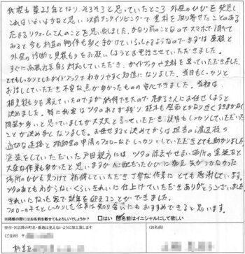 Y様、またお家の事で何かお困りの事がございましたら私たち「花まるリフォーム」にいつでもご連絡ください。