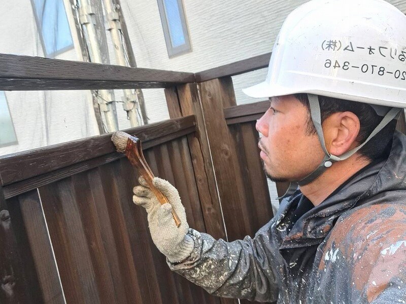 ☆木部を丁寧に塗装する田中親方です。