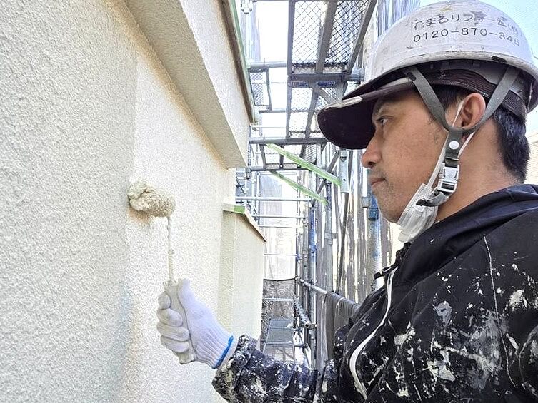 ☆外壁の下塗りをしている戸田親方です。