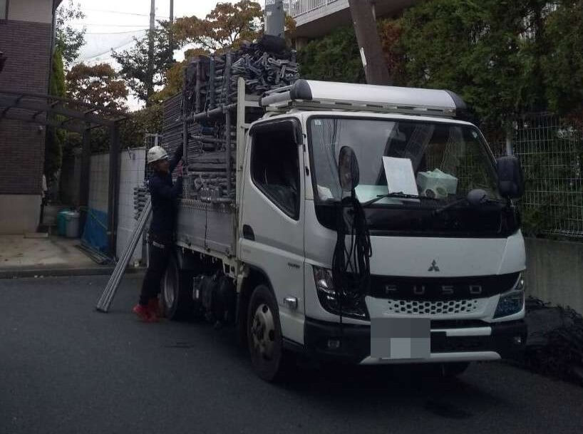 ☆足場資材をトラックから降ろしているKIserviceさんです。