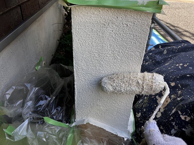 外塀の下塗りをしています。(エスケー化研 水性ミラクシーラーエコ クリヤー)