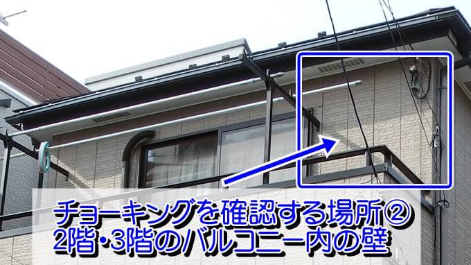 チョーキングを確認する場所② 二番目に適しているのは2階・3階のバルコニー内側の外壁