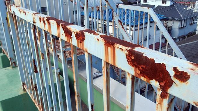 また、錆びていないのに薄皮がめくれるように剥がれている場合には、工事の失敗か手抜きが原因ですが、