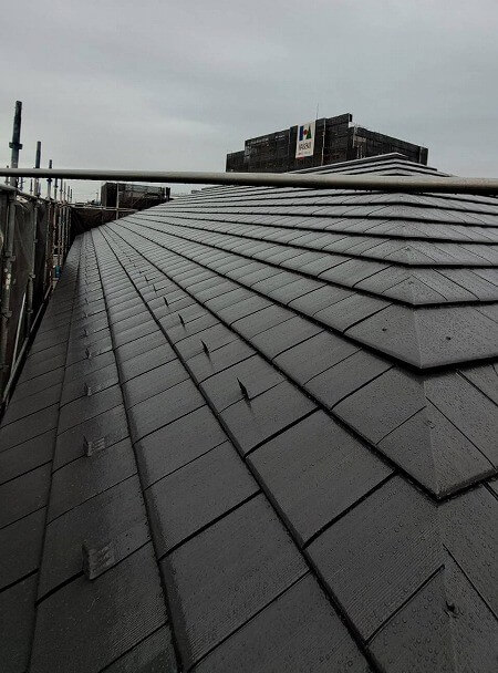 屋根の上塗りが完了しました。(エスケー化研 クールタイトSi CLR-121 セピアブラウン)