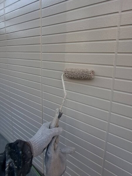 上塗りを進めます。(エスケー化研 クリーンマイルドシリコン SR-108)