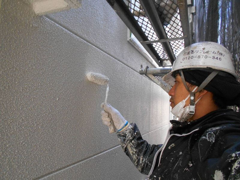 メイン部分の外壁を仕上げていきます。(エスケー化研 アートフレッシュ AC-1735)