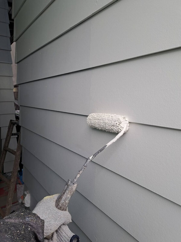 外壁の上塗りをしています。(エスケー化研 アートフレッシュ AC-1466)