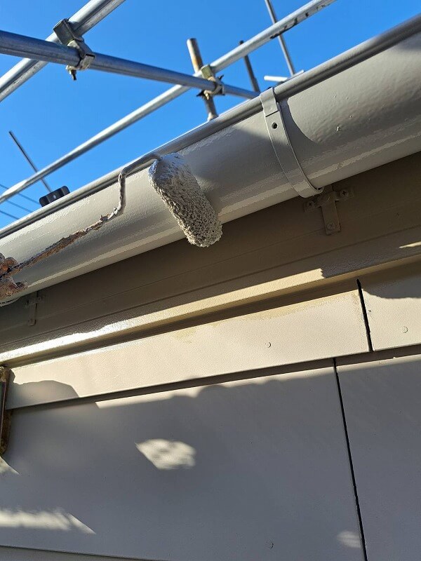 雨樋の塗装をしています。(エスケー化研 クリーンマイルドシリコン)