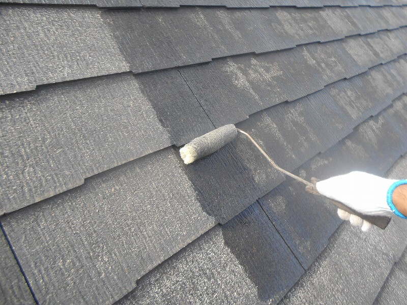 屋根の下塗り中です。(エスケー化研 マイルドシーラーEPO クリヤー)