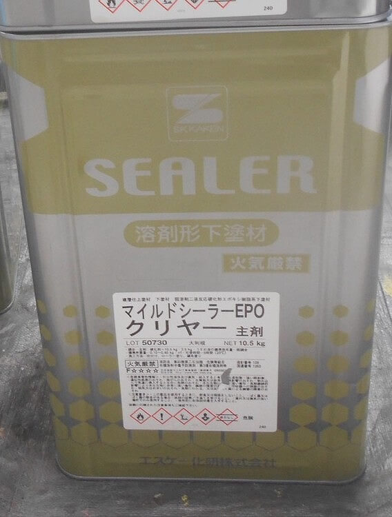 下塗りに使用した塗料です。(エスケー化研 マイルドシーラーEPO クリヤー)