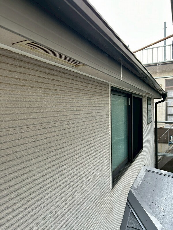 軒裏、換気口カバー、窓周りのシーリング作業が完了しました。