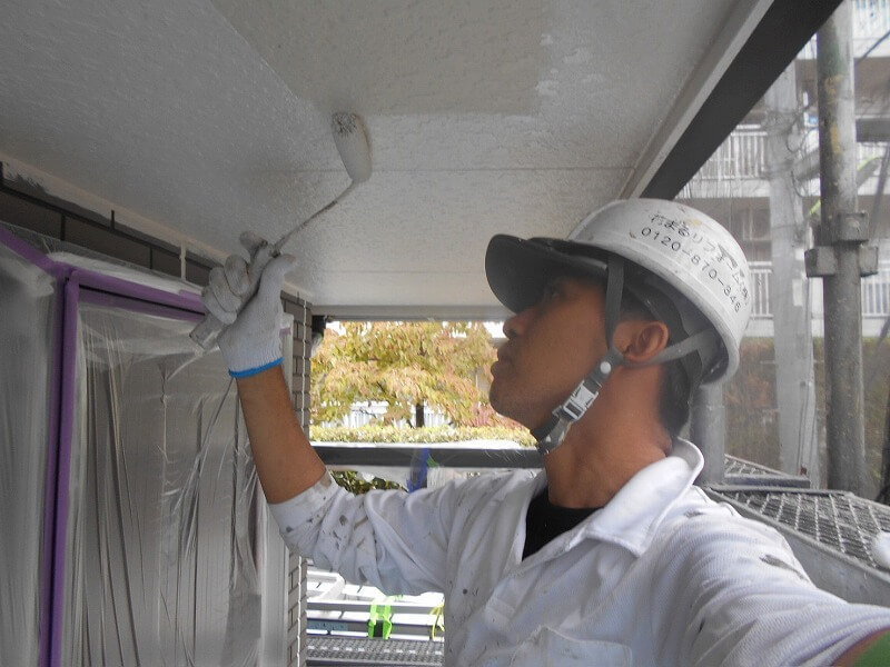 下塗りが乾いたら中塗りしていきます。(エスケー化研 マイルドSDサーフエポ プレミアム)