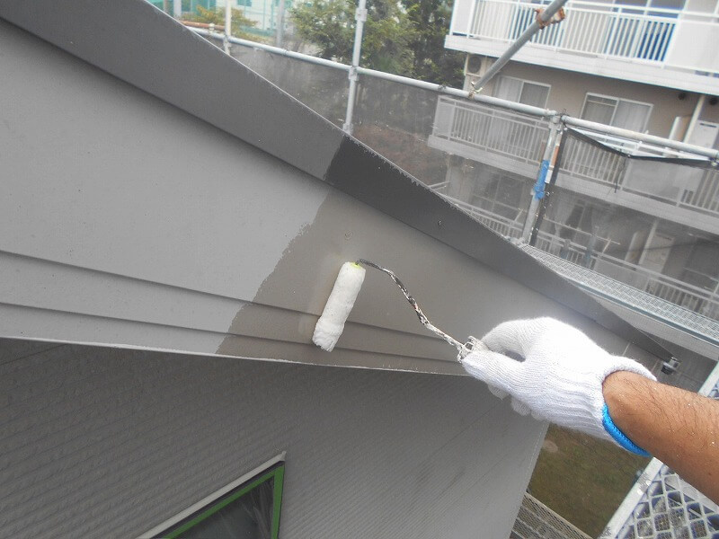 下塗りが乾いたら中塗りしていきます。(エスケー化研 マイルドSDサーフエポ プレミアム)