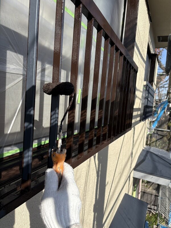 鉄格子の塗装をしています。(エスケー化研 クリーンマイルドシリコン ニト-255)