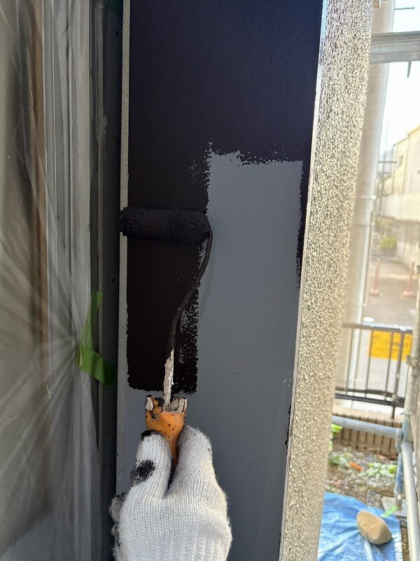 雨戸の戸袋を塗装しています。(エスケー化研 クリーンマイルドシリコン ニト-255)