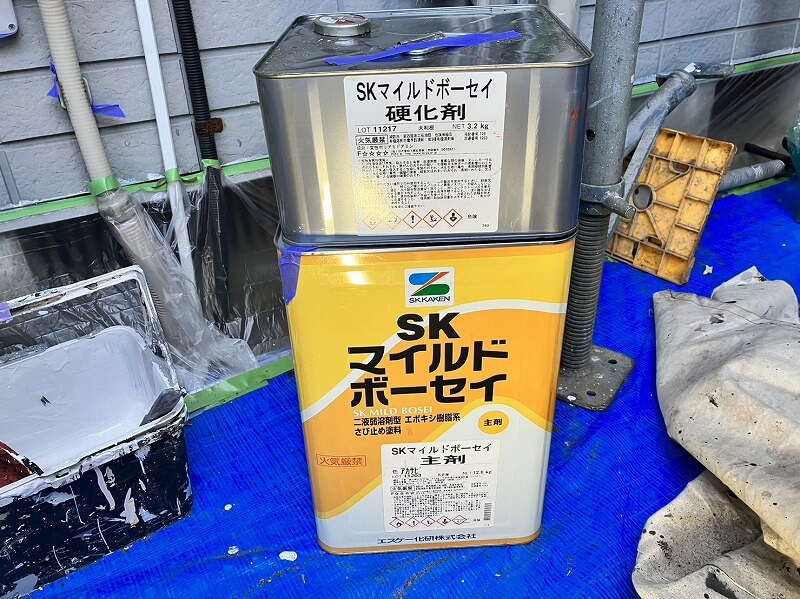 使用した防さび材です。(エスケー化研 マイルドボーセイ アカ)