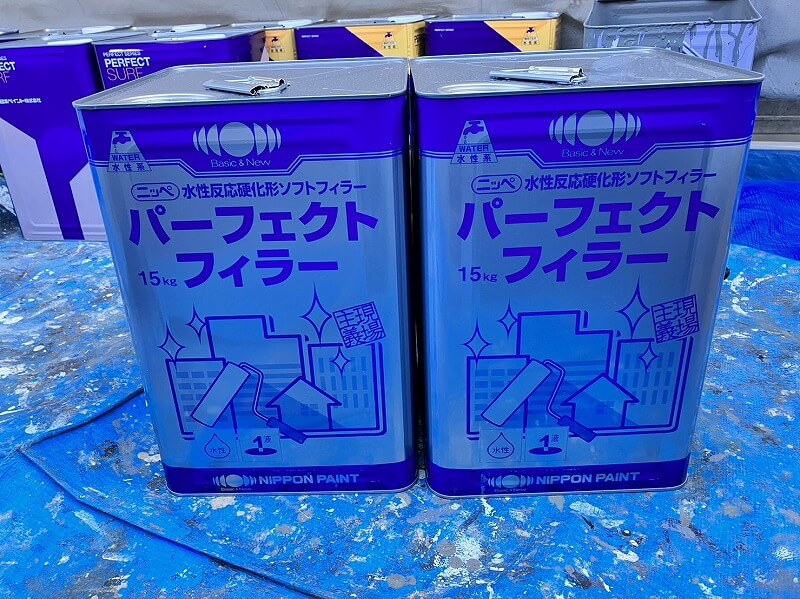 モルタルの外壁に使用した下塗り材です。(日本ペイント パーフェクトフィラー)