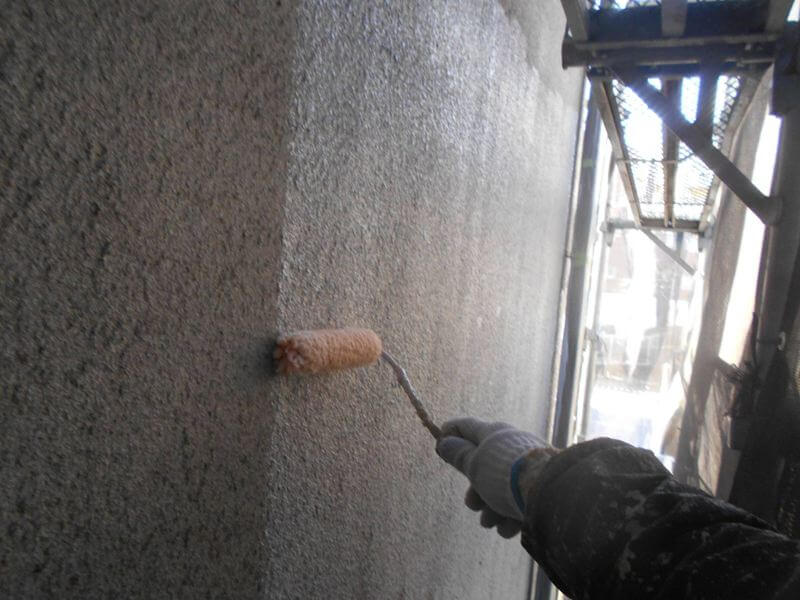 外壁の下塗りを行いました。(エスケー化研 水性ミラクシーラーエコ)