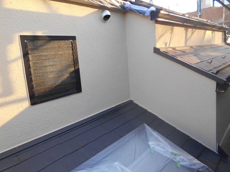 軒裏になる部分も壁と同じ塗料で仕上げています。(エスケー化研 アートフレッシュ AC-2063)