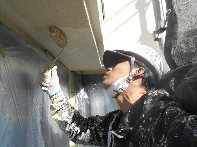 外壁の上塗りを行っています。(エスケー化研 アートフレッシュ AC-2063)