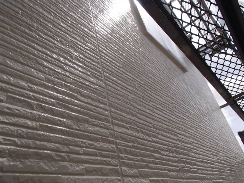 本日は、外壁の中塗りと上塗り、破風板・雨樋の塗装を行いました。