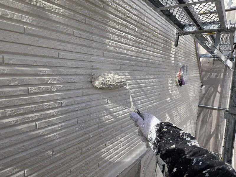残っていた外壁の上塗りを進めます。(エスケー化研 水性セラミシリコン SR-175)