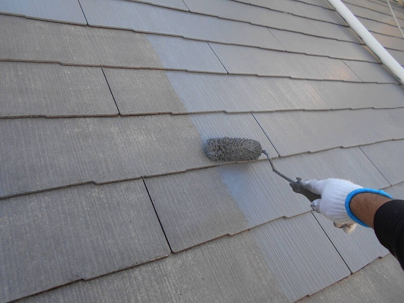屋根の中塗り中です。(エスケー化研 クールタイトSi CLR-106 グレー)
