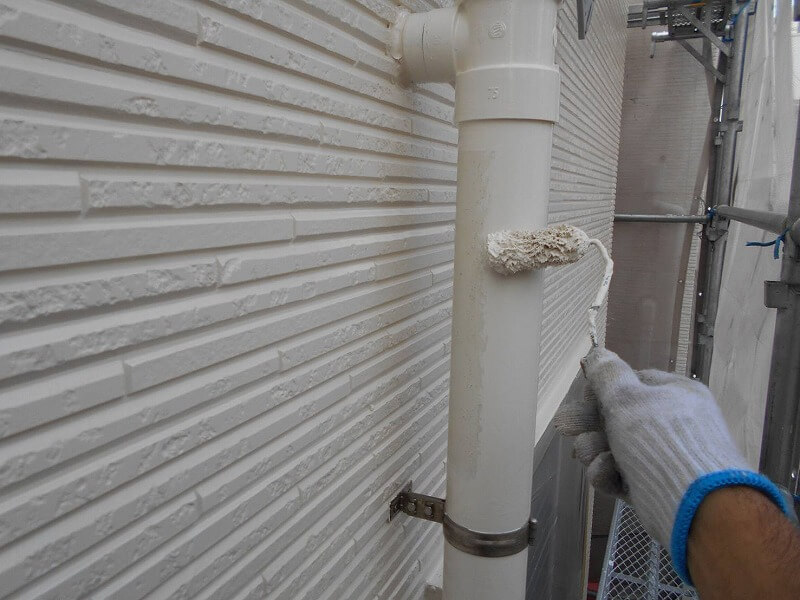 こちらは縦樋の塗装中です。(エスケー化研 クリーンマイルドシリコン 調色)