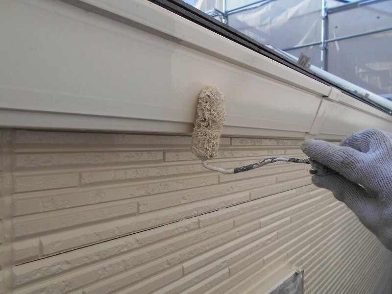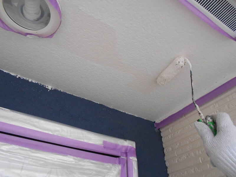 軒天の塗装をしています。(日本ペイント ケンエースG-Ⅱ 調色)
