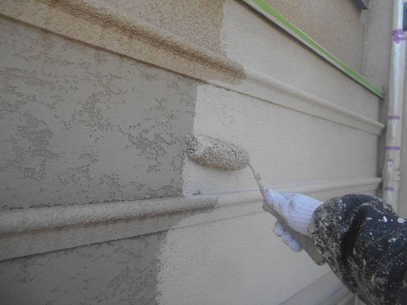 外壁の下塗りの続きを行っています。(エスケー化研 水性ミラクシーラーエコ)