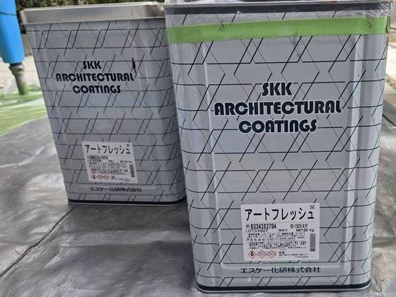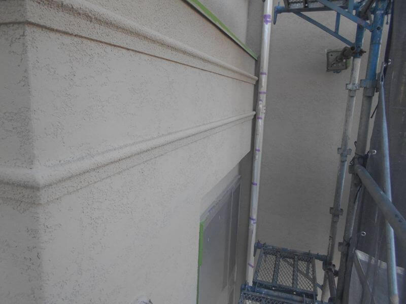 今回のメイン外壁は新築時の仕上材の指定色です。(エスケー化研 アートフレッシュ KN022A)
