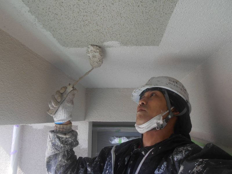 天井の中塗りが完成しました。(エスケー化研 アートフレッシュ KN022A)