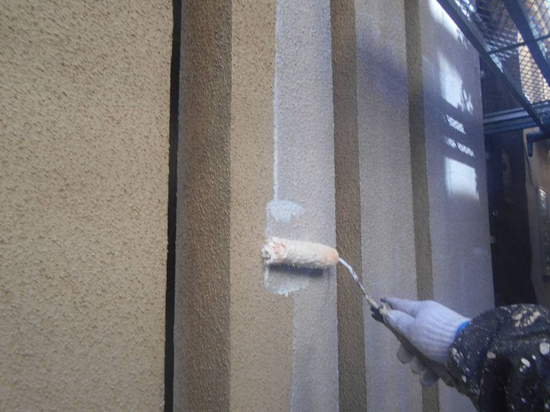 下塗りが乾いたところから中塗りを行いました。(エスケー化研 アートフレッシュ KN022A)