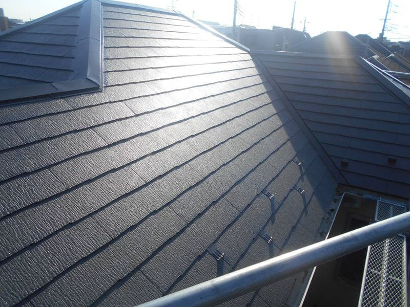 屋根の中塗りができました。(エスケー化研 クールタイトSi CLR-121)