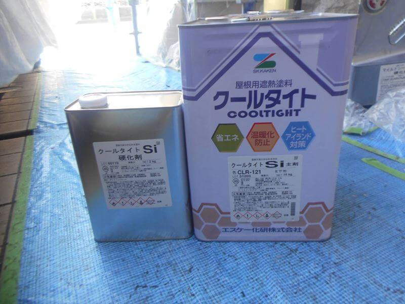 屋根の塗装に使用した塗料です。(エスケー化研 クールタイトSi CLR-121)
