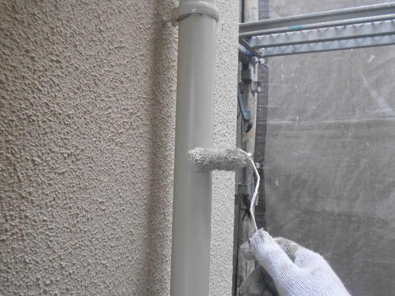 縦樋を塗装しています。(エスケー化研 クリーンマイルドシリコン 調色)