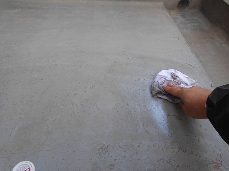 防水床を塗装するため、汚れをアセトンで拭いて落とします。