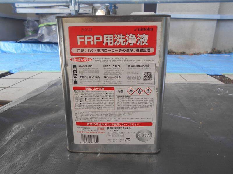 防水床の拭き掃除に使うアセトン(FRP用洗浄液)です。