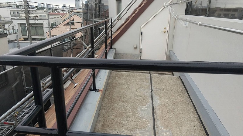 世田谷区S様邸③|雨樋塗装、手摺りケレン・サビ止め・塗装