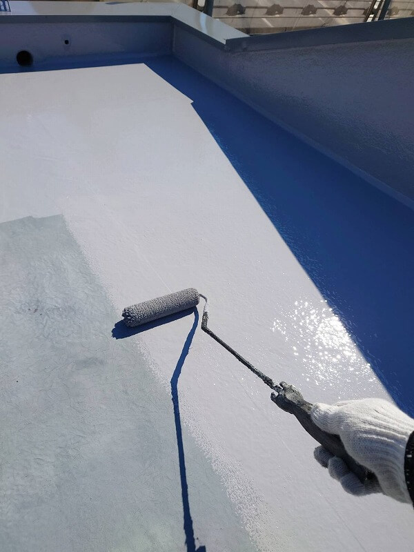 トップコートの塗装が完了しました。(日本特殊塗料 タフシールトップ#300 グレー)