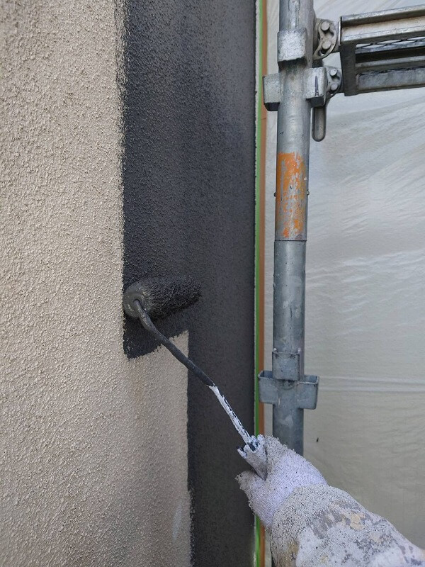 外壁色分け部分の中塗りをしています。(エスケー化研 アートフレッシュ AC-3021)
