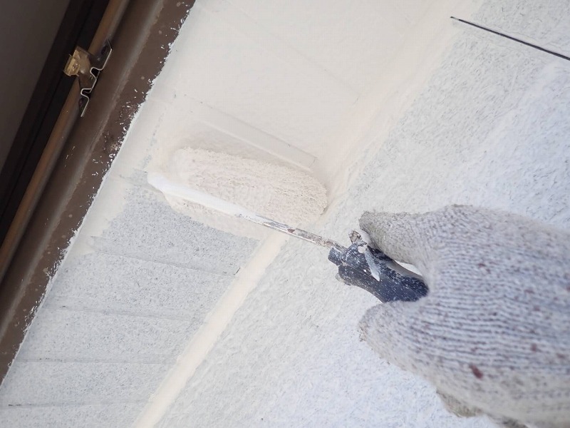 中野区N様邸⑥|軒裏の塗装、外壁の中塗り・アクセント部分上塗り