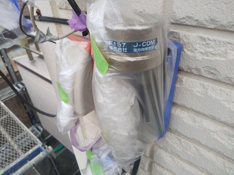 壁に設置してある引込線関係も養生しました。