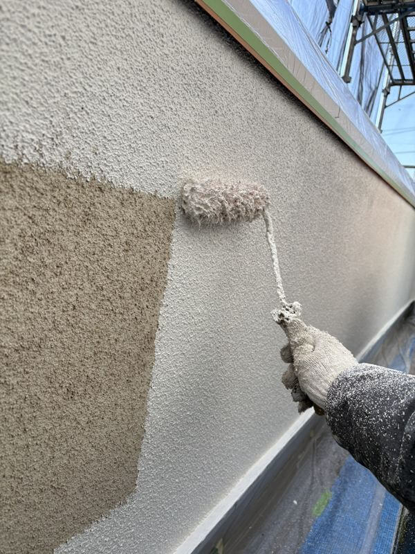 メイン外壁の中塗りを行っています。(エスケー化研 アートフレッシュ AC-1002)