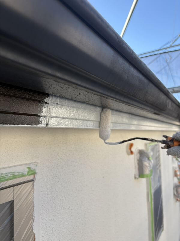 破風板の下塗りを行いました。
